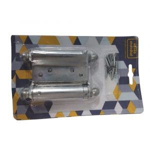- A Dobradiça Aço Vai e Vem 3 Pol. Cromado União Mundial é ideal para portas que necessitam de abertura dupla com fechamento automático.