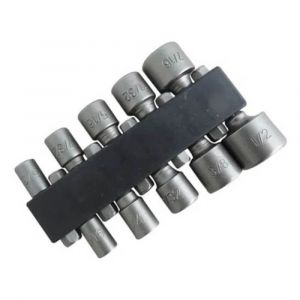 Jogo de Bits Soquete que acompanha 10 Pontas Soquetes de 5/32" (3,97mm), 3/16" (4,76mm), 7/32" (5,56mm), 1/4" (6,35mm), 9/32" (7,14mm), 5/16" (7,94mm), 11/32" (8,73mm), 3/8" (9,53mm), 7/16" (11,11mm) e 1/2" (12,70mm).