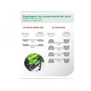 - Relação para regulagem do comprimento de corte, ajuste a correia na posição adequada ao comprimento de corte desejado.