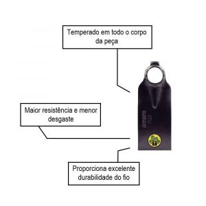 - A lâmina possui tamanho 2.0 e sua afiação é feita em máquinas automatizadas, proporcionando excelente durabilidade do fio.