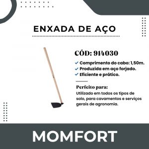 Presente em todos os tipos de obras e construções, as enxadas são parte essencial e para ter qualidade em sua obra com maior largura do metal, só com a enxada Momfort. Liga de aço forjado altamente resistente a impactos deixa o produto com maior resistência e durabilidade. Adquira já sua!