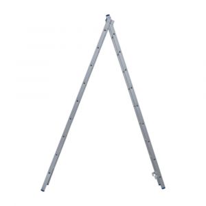 A Escada Profissional Alumasa 2x9 é feita em alumínio resistente, com 3 posições de uso: estendida, em "A" e separada, suporta até 120 kg, possui pés antiderrapantes e é dobrável para fácil transporte e armazenamento.