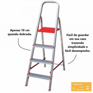 Conteúdo da Embalagem1 Unidade de Escada Residencial Alumínio 4 Degraus Botafogo