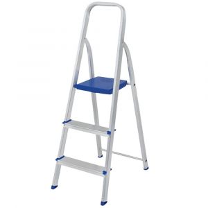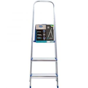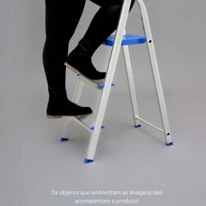 - Dobrável e fácil de guardar, a escada de Alumínio 3 Degraus da Mor é ideal para pequenos consertos e para alcançar lugares mais elevados no uso doméstico.