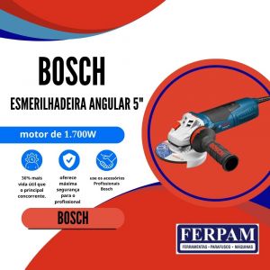 - A Esmerilhadeira Angular de 5" Bosch GWS 17-125 CIE oferece alto desempenho graças ao potente motor de 1.700W com Constant Electronic que garante o número de rotações constante, inclusive com sobrecarga.