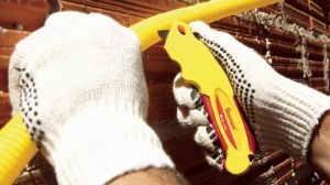 -Armazenamento de lâminas de reposição no interior do cabo (1 na posição de corte e 4 no dispenser).