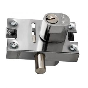 Fechadura PV02 para porta de vidro com pino e cilindro oval, segura e resistente. Funcionamento suave, travamento eficiente e acabamento de qualidade.