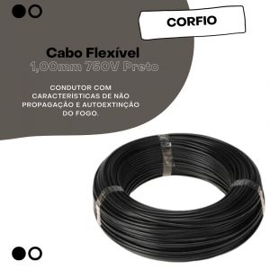 1 Metro Cabo Flexível 1,00mm 750V Preto Corfio