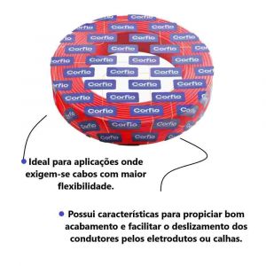 - Possui características para propiciar bom acabamento e facilitar o deslizamento dos condutores pelos eletrodutos ou calhas.