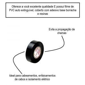Oferece a você cliente mais qualidade e ideal para enfaixamentos de cabos condutores e isolamento elétrico. Além disso, e feita de PVC, sua estrutura é composta de diversos materiais que não conduzem eletricidade.