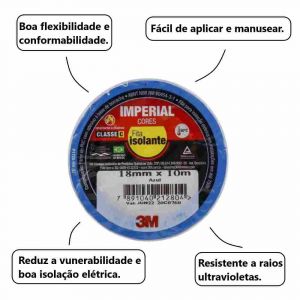 A Fita Isolante Imperial 3M é indicada para uso geral e doméstico. é ideal para pequenos reparos elétricos, reforço em cabos de ferramenta e manutenções provisórias. Possui boa isolação térmica e flexibilidade, é resistente a raios ultravioletas e reduz a vulnerabilidade dos materiais. Garanta já a sua!