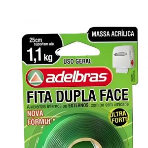 - A Fita Dupla Face Massa Acrílica da Adelbras é a solução perfeita para fixações internas e externas que precisam de extrema aderência. Com sua poderosa cola acrílica em ambos os lados, essa fita gruda em praticamente qualquer superfície.