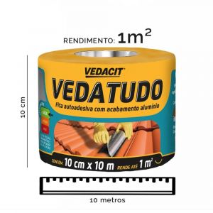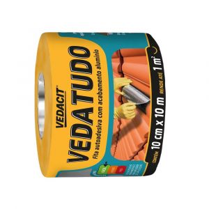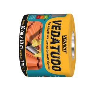 Fita asfáltica autoadesiva para vedação e reparo de telhas, calhas, rufos e dutos. Com 10cm de largura e 10m de comprimento, oferece uma solução rápida, prática e durável contra goteiras e infiltrações, garantindo proteção imediata.