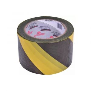 Fita zebrada Worker 7 cm x 200 m em PEBD preto e amarelo, sem adesivo, é ideal para sinalização de áreas de risco e demarcações, leve, resistente e durável, com excelente visibilidade em ambientes internos e externos.