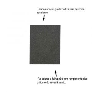 Tecido especial que faz a lixa bem flexível e resistente, dupla camada de algomerante, fixa fortemente os grãos sobre a base, ao dobrar a folha não tem rompimento dos grãos e do revestimento, necessária para a limpeza de óxidos. Adquira já o seu!