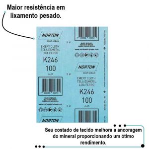 - A Folha de Lixa Ferro K246 Grão 100 é uma lixa de pano com grãos de Óxido de Alumínio Marrom