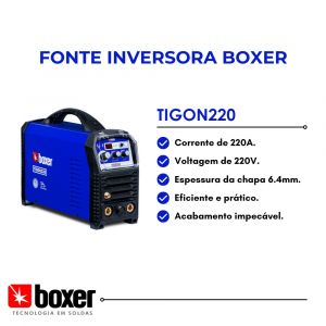 Conteúdo da Embalagem1 Inversora Tigon220 TIG DC mais Eletrodo 220V Boxer.