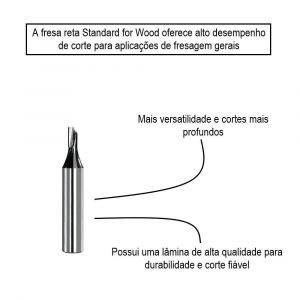 - A fresa reta Standard for Wood oferece alto desempenho de corte para aplicações de fresagem gerais.