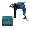 - A furadeira de impacto Bosch GSB 13 RE-X23 acompanha: 1 chave de mandril, 1 empunhadeira auxiliar, 1 limitador de profundidade, manual e 23 acessórios (4 brocas para concreto, 4 brocas para madeira, 4 brocas para metal, 10 bits, 1 extensor). Garantia 2 anos Bosch.