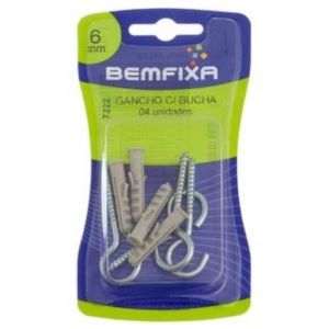 Gancho Com Bucha 4 Unidades 6mm Bemfixa