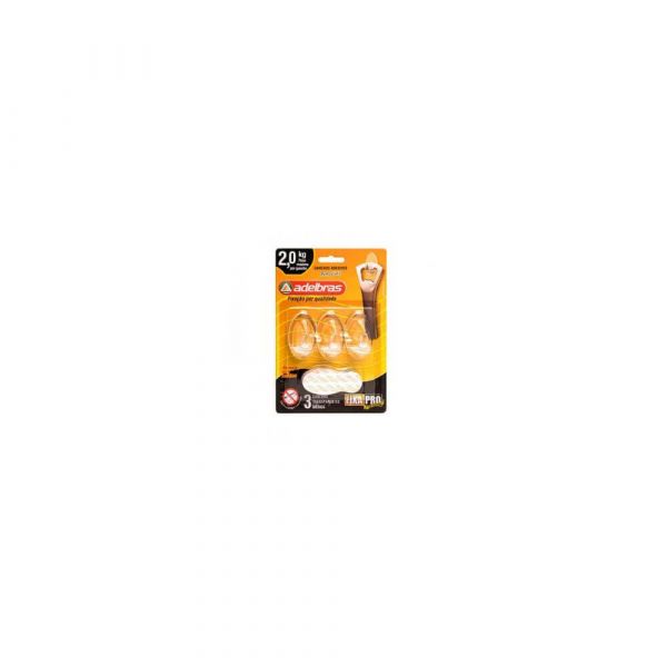 Gancho Plástico Transparente Removível 54X33mm Adelbras