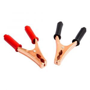 - O par conta com garras negativo e positivo de 200A, é fabricado em latão zincado e possui proteção emborrachada em suas pegas.