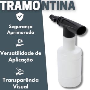 - Na hora de realizar a limpeza no seu automóvel ou casa, o que não pode faltar é a Garrafa para Aplicação de Sabão para Lavadora de Alta Pressão Tramontina.