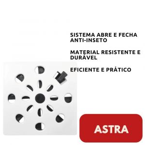 Conteúdo da Embalagem1 Unidade de Grelha Quadrada 9,4 x 9,4cm com Anti-Inseto em PVC Branco Astra.