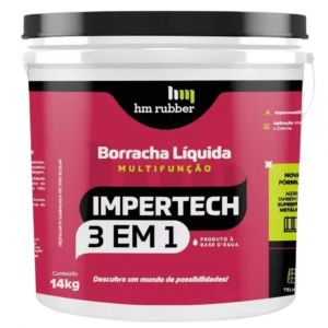 O Impertech 3 em 1 da HM Rubber é um impermeabilizante incolor de alta performance com 14kg, protege, sela e reveste superfícies contra infiltrações é ideal para telhados, lajes, paredes e áreas úmidas, com fácil aplicação e longa durabilidade.