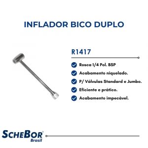 Inflador Bico Duplo para Válvula Standard e Jumbo R1417 Schebor