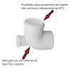 - Ideal para incorporação de rede, coluna de ventilação e mudar direção em ângulo de 90° com uma derivação para outra linha de tubos.