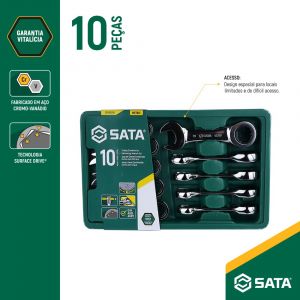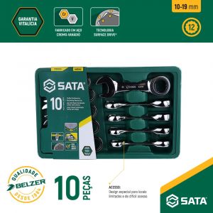 O Jogo de Chave Combinada Curta com Catraca de 10 a 19mm 10 peças SATA – ST09025G é ideal para profissionais mecânicos para indústrias que realizam manutenção em locais confinados.