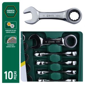 Jogo Chave Combinada Curta Catraca 10 à 19mm 10 Peças ST09025G
