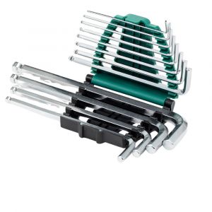 Jogo Chave Hexagonal Pol. Abaulada Longa 12 Peças Sata é ideal para alcançar locais de difícil acesso. Fabricado em aço cromo-vanádio, oferece alta resistência, precisão e durabilidade. Perfeito para uso profissional e industrial.