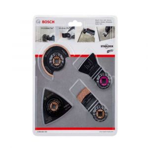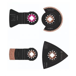 - As três lâminas Starlock incluídas permitem remover as juntas de argamassa entre os azulejos, raspar o reboco e o corte de imersão de madeira e metal não endurecido.
