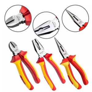 - Segurança e Conformidade com Normas VDE: Cada alicate neste conjunto atende às rigorosas normas VDE, assegurando isolamento e proteção contra choques elétricos, tornando-os seguros para trabalhos em instalações elétricas.
