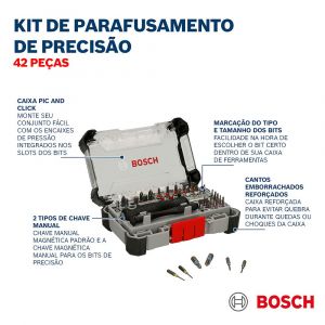 - As 42 pontas oferecem uma grande variedade de tamanhos e tipos, adequadas para diversas tarefas de reparo e montagem.
