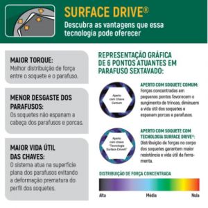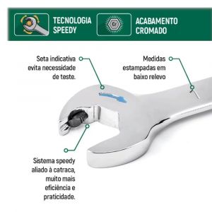 - Proporciona excelente qualidade e aperta ou desaperta porcas e parafusos sem precisar retirar a chave do ponto de fixação.