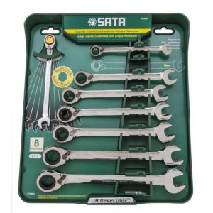 Jogo De Chave Combinada Com Catraca Reversível 8 Peças Sata