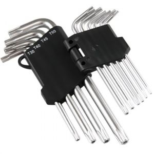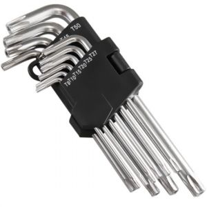 Chave Torx 10pçs com Furo Western 2060 - É tipo "L" - Fabricado em aço cromo - Contém 10 medidas: T9 • T10 • T15 • T20 • T25 • T27 • T30 • T40 • T45 • T50 Indicado: - Para fixar e soltar parafusos hexalobular