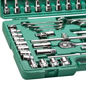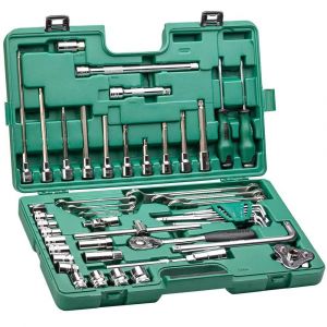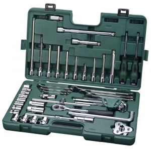 - Caixa organizadora estilo maleta termoplástica, protege e organiza as ferramentas.