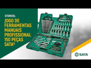 - O jogo de ferramentas manuais Profissional 150 Peças ST09510SJ Sata vem com maleta termoplástica resistente com alça que facilita a locomoção das 150 ferramentas.