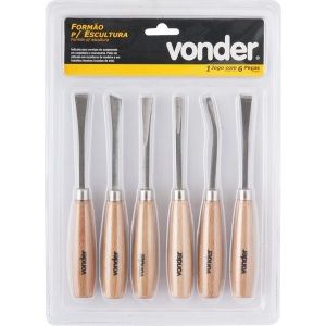 - 1 formão com lâmina reta e ponta goivada de 6 mm de largura.