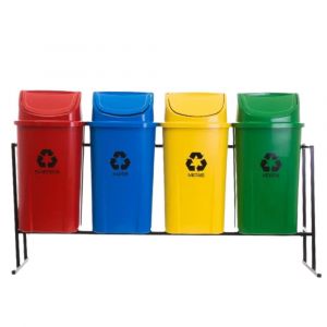 - Composto por 4 lixeiras, facilita a coleta seletiva, contribuindo para práticas sustentáveis e descarte correto do lixo.