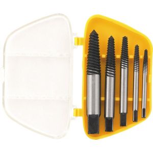 - 1 Jogo de saca-parafusos, composto por um estojo plástico com 5 peças, sendo: nº 1, nº 2, nº 3, nº 4 e nº 5, para parafusos de 1/8" a 3/4"