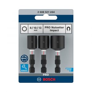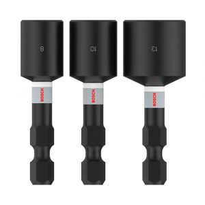 Jogo de Soquete Canhão Impact Bosch com 3 peças (8, 10 e 13 mm), desenvolvido para uso com chaves de impacto, garante alta durabilidade, resistência e encaixe preciso, ideal para aplicações profissionais e automotivas de alto desempenho.