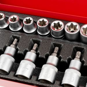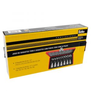 Conteúdo da Embalagem1 Jogo de Soquetes Torx Encaixe 1/2 Pol. 16 Peças Eda