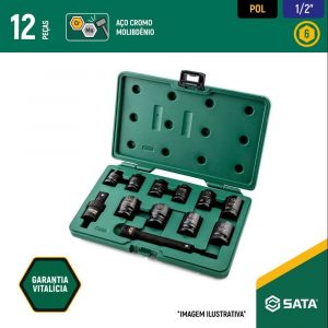 Jogo Soquete Impacto Sextavado 1/2" com 12 peças ST09009SJ Sata