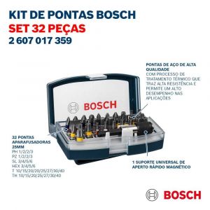 - O portfólio Bosch Extra Hard é completo e possui Pontas Philips (PH), Pozidriv (PZ), Torx (T), Fenda (S) em diferentes tamanhos.