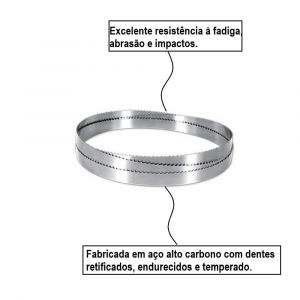 Suas maiores vantagens são afiação especial para cortes suaves e limpos, sem perda de material, usando as laminas de serra fita seu ganho em produtividade é muito maior, aço alto-carbono com acabamento polido, dentes retificados e temperados. Confira já!